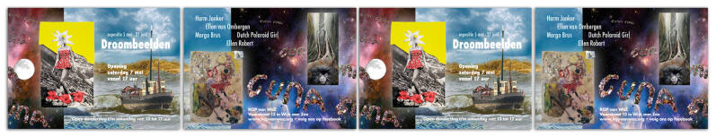 Een diavoorstelling van de expositie opening van Droombeelden. Het inrichten, het feestje, enkele werken. Met dank aan de deelnemende kunstnaars Ellen Robert, Margo Brus, Annemiek Schmidt Crans cq Dutch Polaroidgirl, Ellen van Ombergen en Harm Jonker.