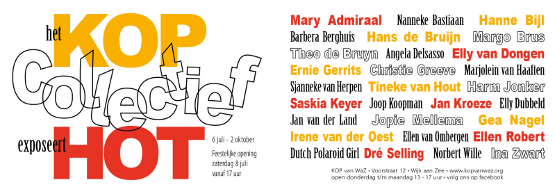Zaterdag 6 juli vanaf 17 uur is er weer een opening op de nieuwe locatie van de KOP Iedereen is welkom! Een expositie met werk van Jopie Mellema, Tineke van Hout, Gea Nagel en Dutch Polaroidgirl.