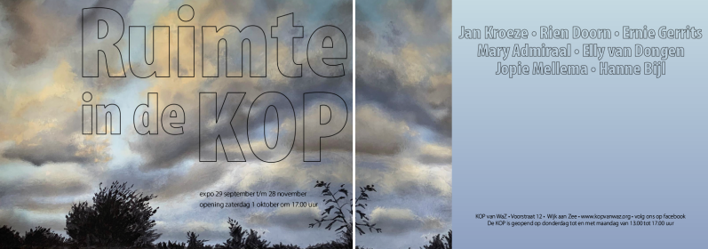 Vanaf 29 september is er weer nieuw werk te zien in de KOP, en deze keer exposeren er maar liefst 7 kunstenaars! Jan Kroeze, Rien Doorn, Ernie Gerrits, Mary Admiraal, Elly van Dongen, Jopie Mellema en Hanne Bijl.